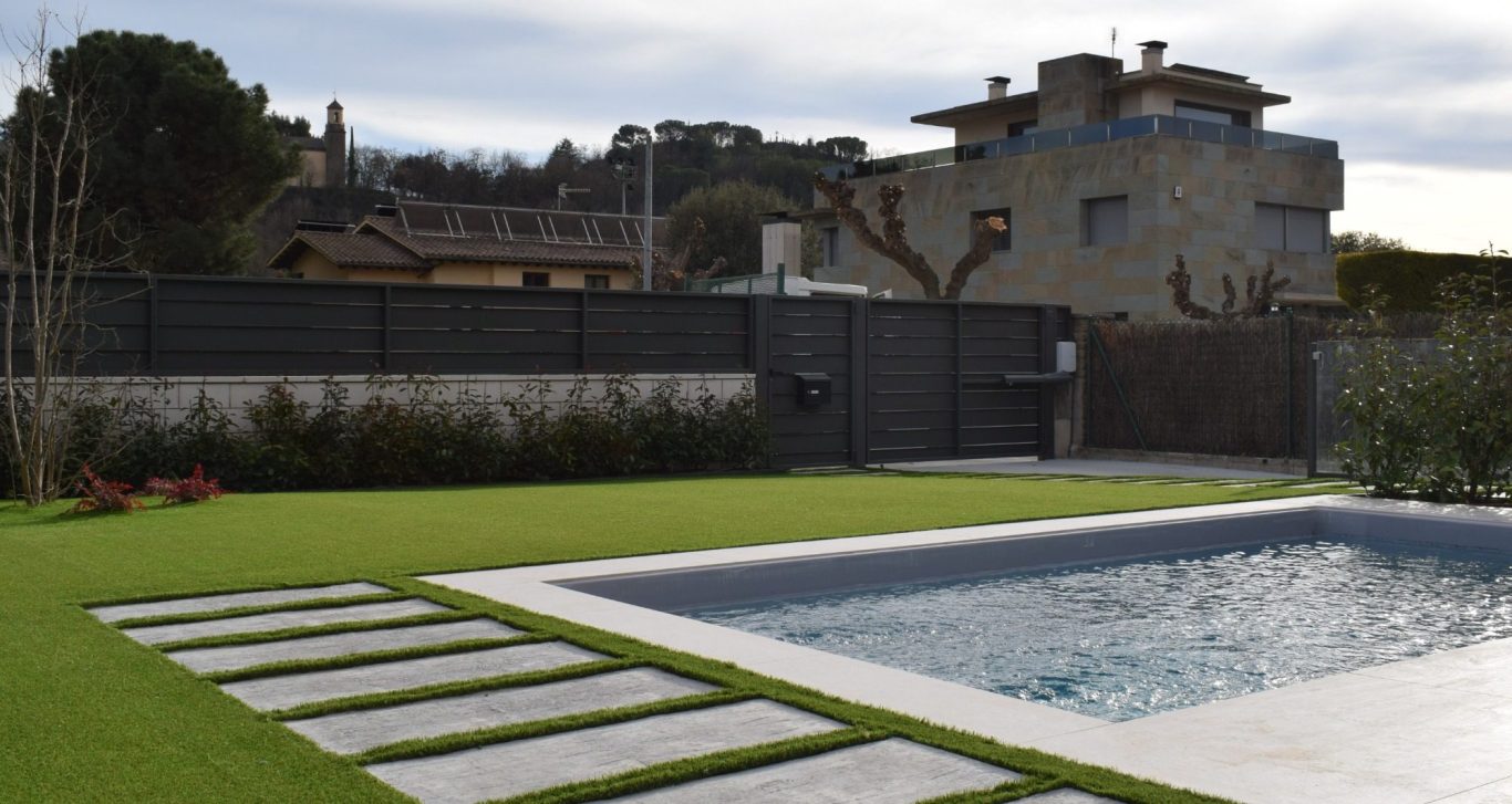 Instalación de césped artificial de alta calidad, ideal para un mantenimiento bajo y un aspecto impecable.